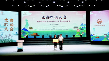为太白湖新区颁发“太白诗词吟诵基地”牌匾。