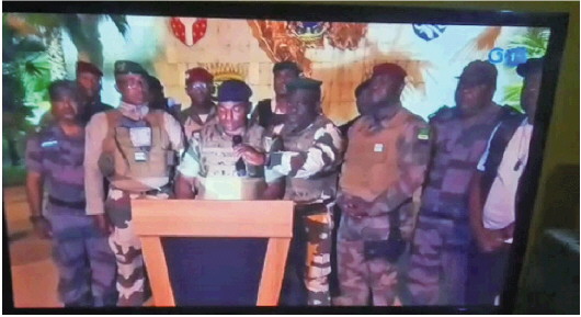 当天凌晨,加蓬选举中心宣布,加蓬总统邦戈在26日举行的总统选举中以64.27%的得票率获得连任。随后,十余名军方人员以“机构过渡和恢复委员会”的名义在加蓬24电视台发布声明宣称选举结果无效,解散选举机构,并称已获取政权。“我们决定通过结束现行政权来捍卫和平。”
