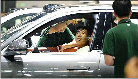9月1日,齐鲁国际车展火热进行中,在各个展台,购车的市民仔细感受心仪车型的外观内饰,外面仔细瞅瞅,车内用心坐坐,精挑细选自己最中意的一款。 记者 王媛 摄