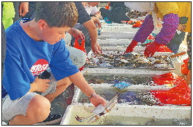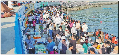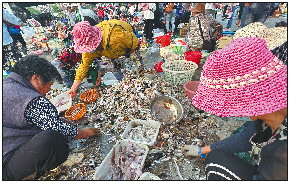 青岛崂山区南姜码头,市民争相抢“鲜”。 记者 高雅洁 摄