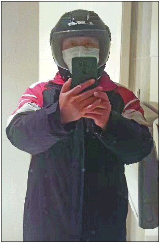 邢斌送外卖间隙的自拍照 受访者供图