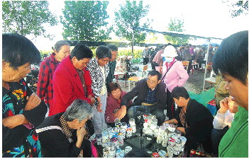 今年68岁的收购商邹先生来自杭州,他每年都会来乡饮收购蟋蟀。今年邹先生来到乡饮,选择住在苑文清家中。苑文清家在乡饮乡驻地,离黑风口蟋蟀交易市场不远,每年乡里宾馆、农家乐满员后,许多客商也会在附近农户家住下。因此,苑文清每年能有4000元的收入贴补家用。