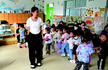 新生入园体验 为拉近新入园孩子与老师之间的距离,让孩子尽快适应幼儿园的生活,近日,沂源县悦庄镇中心幼儿园开展了小班新生入园体验活动。 (翟娟)
