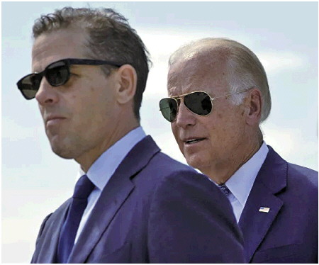 美国总统拜登与儿子亨特·拜登(前)。 资料图