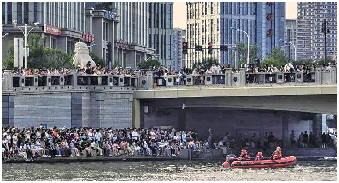 最近几天,狮子林桥周边,有关部门增加部署了警力、志愿者、水上救援力量,保障现场秩序和安全。