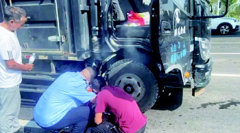 本报9月8日讯(记者 吴昊)路边货车突然起火,一名公交车驾驶员拿起灭火器向货车跑去,不到30秒成功将火扑灭,这是9月5日在宝通街渤海路路口发生的一起救火事件。