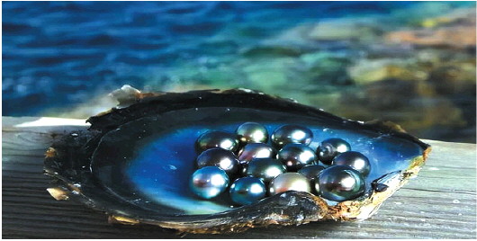 大溪地岛是海水黑珍珠的重要产地,全球95%的海水黑珍珠都产于此,被称为“珠中皇后”。大溪地珍珠的母贝是黑蝶贝,它能分泌特殊的黑色珍珠质。黑蝶贝非常珍贵,一般100只珠母中,只有30%的概率会孕育出珍珠,世界上每年出产的优质天然黑珍珠,总共不到15万颗。平均下来,每1000颗黑珍珠中,才会有一颗超过11毫米的珍珠。