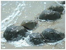 每年春季,成千上万只鲎,会爬到美国大西洋海岸中部地区海滩交配产卵。每次涨潮,雌鲎都会产下2至5堆卵,总数可达4000枚,然后掉头返回深海。繁殖季节,一只雌鲎平均可产下大约8万枚卵。然而,300万枚卵里,可能只有一枚能孵化出幼体并顺利活到成年。