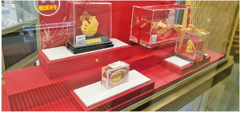 13日上午10点多记者来到了经四路万达广场。此时,一楼大厅的各大金店都在开门迎客。可能是时间尚早,此时大部分金店里都没有客人。