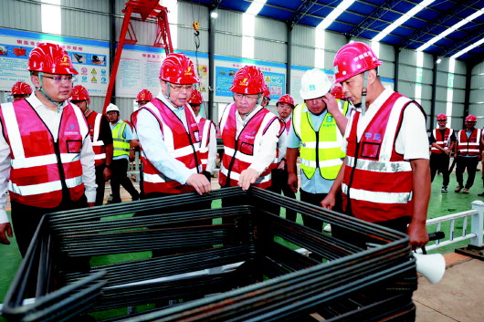 启动仪式结束后,与会人员现场观摩了东飞行区下穿通道项目施工现场,该项目是东飞行区工程中最大的单体工程,基坑共槽段最大开挖宽度近100m,是目前全国民航明挖施工最宽的下穿通道工程,创造了行业之最。其间,重点观摩了下穿通道施工在关键工序控制、质量管控手段、现场施工组织、危大工程管控等质量安全方面的亮点做法,深入了解了大体积混凝土质量控制、危大工程自动化检测、数字化技术应用等创新工作,随后参观了标准化钢筋加工厂及高标准混凝土拌合站。