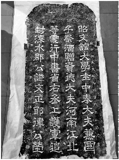 耶律有尚墓碑高160厘米、宽80厘米、厚20厘米,上刻“亚中大夫东平路总管门生张博文书昭文馆大学士、中奉大夫兼国子祭酒,赠资德大夫、河南江北等处行中书省右丞、上护军,追封漆水郡公,谥文正,耶律公茔西去此三里李家槊石碑村瓠山之阳”。可惜碑体背面已遭风雨斑驳和人为破坏,字迹模糊不能辨认,内容应为墓主生平和立碑人。从碑文看,耶律有尚安葬在东平,与其父耶律钧葬在一起。