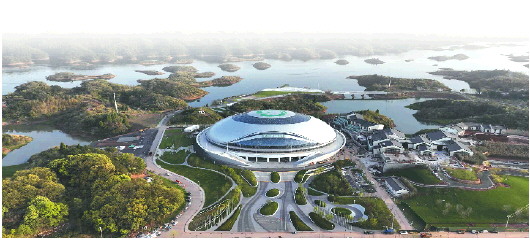 作为杭州亚运会开闭幕式举办地,这一场馆造型取意于古老的丝绸纹理与编织体系,建筑体态源于钱塘江水的动态。从空中俯瞰,它与亚运会网球项目竞赛场馆“小莲花”犹如“花”开并蒂,串联成“接天莲叶无穷碧,映日荷花别样红”的如画意境。