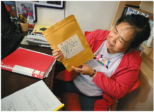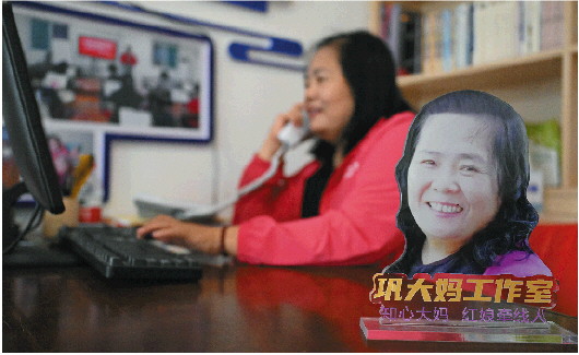 舜华社区特地腾出一间办公室,为巩兰英打造了个人工作室,她笑脸盈盈的照片让人很亲切。
