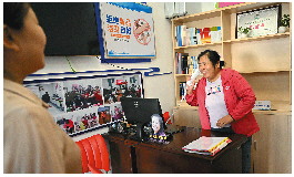 巩兰英正在和前来相亲的年轻人聊天,为她们匹配合适的相亲对象。
