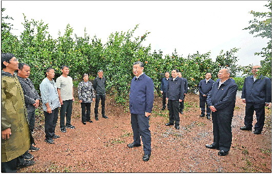 9月24日,习近平在位于枣庄市峄城区的冠世榴园石榴种植园同老乡们亲切交流。 新华社发
