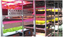 LED灯发光效率高,发热少,而且光强、光谱都是根据不同植物需求特制的。这种“光配方”既能满足植物生长需要,又比荧光灯更节能,是植物工厂的理想光源。