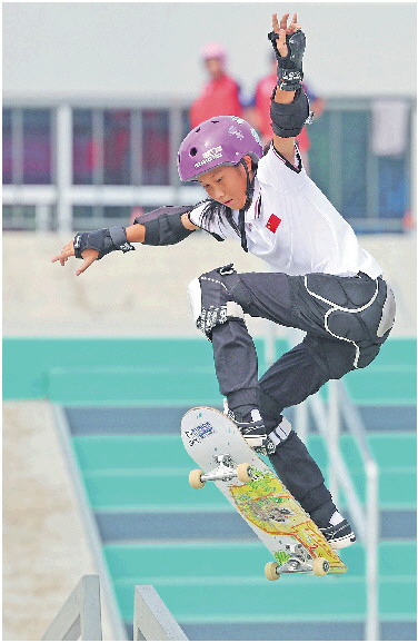 当崔宸曦路过混采区时,在场媒体呼喊着她的名字,她一边踩着滑板一边扭头说道:“等一下,我先去个洗手间!”记者都被她“萌化了”,过了一会,这位小脸晒得有些发红的少女,拎着滑板来到大家面前。