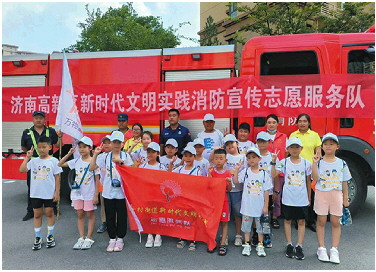 文明消防宣传志愿服务队走进中小学,为学生们科普消防安全知识。