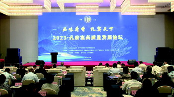 在论坛正式开始之前,“2023·孔府宴金秋启窖盛典”在孔府宴酒厂(东厂区)酿酒车间隆重举行,新的酿酒季也将由此开启。在随后举办的“2023·孔府宴产品推介会”中,孔府宴酒业质量技术中心经理张盛飞为大家讲解了孔府宴“荷香白酒”“荷香米酒”的工艺和特色,并隆重推出孔府宴六款系列产品。