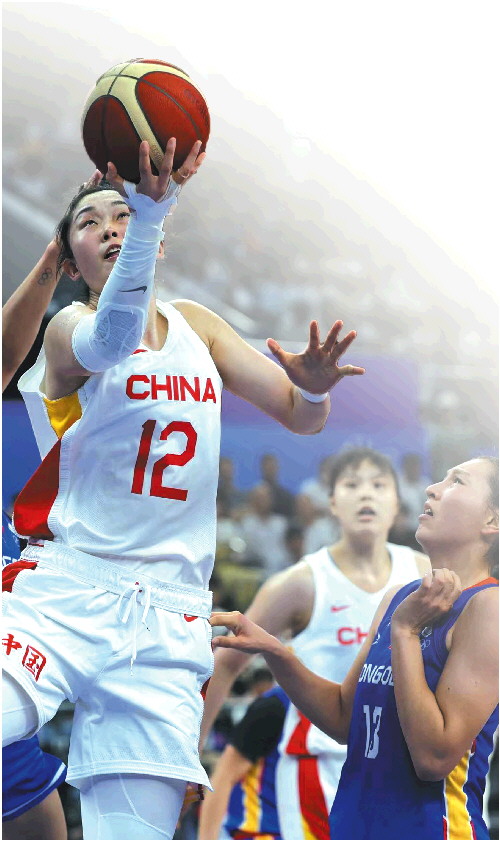 中国队潘臻琦(左)在比赛中上篮。 特派记者 王鑫 摄