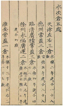 为便于漕粮存储与转运,明代在运河沿岸线修建了多处水次仓,“迨会通河成,始设仓于徐州、淮安、德州,而临清因洪武之旧,并天津仓凡五,谓之水次仓,以资转运”,其中山东运河沿岸著名的水次仓有临清仓、德州仓和济宁仓。
