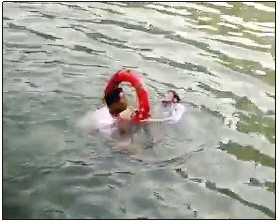 王恒:我跳到河里就被水呛了一下,那一瞬间我就感觉自己浑身没劲了,但我既然跳下来了就一定要救她。在水里的时候,我也不知道怎么回事,我从来没见自己这么理智过,第一时间先去拿好心人扔下来的游泳圈。我觉得她在水里挣扎的情况下,可能我们两个都会沉下去,所以先拿游泳圈有个保障。然后我过去救她的时候,我就告诉她你不要挣扎,她当时还挺听话,就立刻不动了,这对我来说就好办了,我就游呗,就拖着她往岸边去。