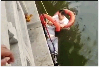 王恒:事发当时我正在小清河南岸钓鱼,在我低头时突然听到北岸传来落水声,然后我抬头看到有一双手伸出水面,我一看肯定是有人掉水里了。我当时想应该会有人救她吧,但我还是把手里的渔竿放下了,我又怕万一没人会水救她怎么办?然后我赶紧就跑过去了。
