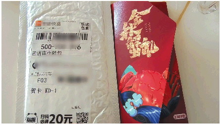 “几乎每年朋友都会给我邮寄点大闸蟹尝尝鲜,但今年的大闸蟹有些特别。”10月11日,济南市民赵亮(化名)打开印有“贺卡”字样的申通快递后,他惊奇地发现,包裹中的这张蟹卡有些似曾相识。