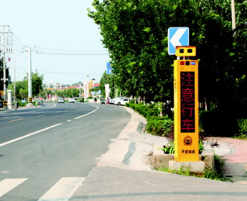 为不断提升风险智慧防控水平,冠县交警还建立了“平安哨兵”预警机制。以国省道和县乡道平交路口为重点,增设路口来车预警系统“平安哨兵”180个,实现“支路主路兼顾、人车智能监测、动态语音宣传”全天候交通安全警示。