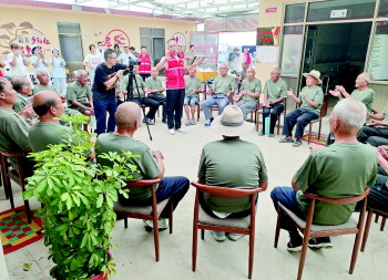 幸福院里另一旁,也热闹非凡。志愿者们熟练地为老兵们体检、理发;退役军人事务局工作人员和老兵们围坐在一起,向他们宣传解读《退役军人保障法》《军人抚恤优待条例》《伤残抚恤管理办法》及“两支基金”等法律法规政策,了解老兵困难诉求、拉家常。