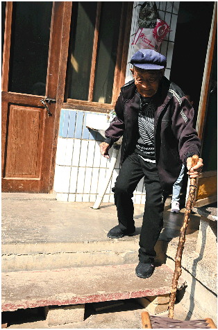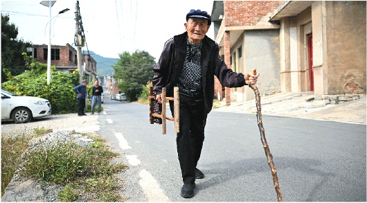 老人身体硬朗,每天外出遛弯儿,一手拄着拐杖,一手拿着马扎,走得很稳当。