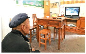 ◤马永庆眼不花耳不聋,喜欢看电视上的节目。