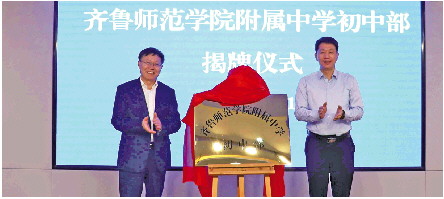 齐鲁师范学院附属中学初中部在长清区实验中学揭牌。