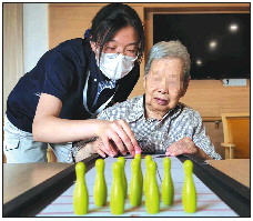 ▲在北京一家养老机构实习期间,林曼青陪伴认知症老人做活动。