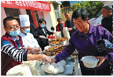 10月22日中午,济南起步区太平街道秦三村的村委大院饭菜飘香,村里的老人们领到了热气腾腾的排骨炖土豆,还试穿了厚实的棉袄。在重阳节来临之际,历下区住建局派驻秦三村第一书记邢可锋联系山东宏德广酒店管理有限责任公司,开展“浓浓敬老情 爱在重阳节”活动,在村委大院内为村里65岁以上的126位老人现场制作了可口午餐,同时为70岁以上81位老人准备了棉袄,让老人们过了一个暖心重阳节。 记者 王鑫 摄影报道