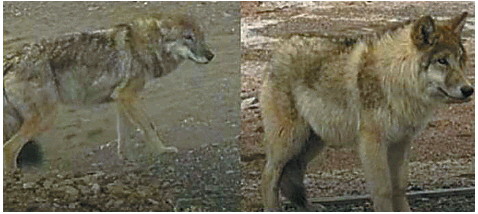 被投喂前后的野狼被网友戏称“判若两狼”。