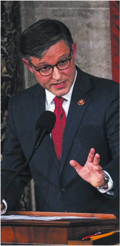 10月25日,在美国华盛顿,新当选的众议院议长约翰逊发表讲话。 新华社发