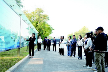 本报济宁10月30日讯(记者 丁安顺) 微风徐徐,碧波荡漾,10月24日,“大美湿地·润泽齐鲁”网络主题活动走进山东济宁太白湖景区湿地公园南段老运河人工湿地。漫步湿地,人们仿佛置身于一幅生态画卷中。