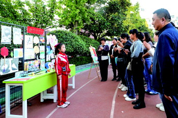 在教师的引领下,家长们来到学校办学成果及办学特色展现场,全面了解学校育人理念和办学特色。之后,参观了师生“传承创新 适美东门”作品展区、少先队活动室、音乐教室、版画教室、创客教室、中医药文化长廊等教育阵地活动。同时,倾听少先队员讲先锋故事,观摩了音乐校本特色课程“陶笛”表演、美术校本特色课程“版画”制作、3D打印“守护地球”机器人竞赛。