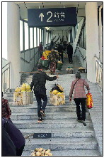 上午10点半,7272次列车到达铜仁站。“扁担大军”出站后,向北穿过小道再走几百米,就是当地的金码头农贸市场。