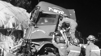 消防人员正在救援四车连撞交通事故中的被困人员(安丘消防供图)。