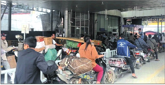 小城实在繁忙,不少缅甸牌照的摩托车、电动车上午来扫货,下午再从口岸返回缅甸。不过,来时还单枪匹马的一人一车,回缅甸的时候,已经载着一百多公斤货物了——