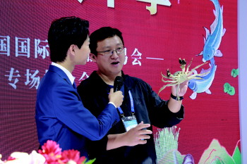 微山湖大闸蟹亮相第二十届中国国际农交会。