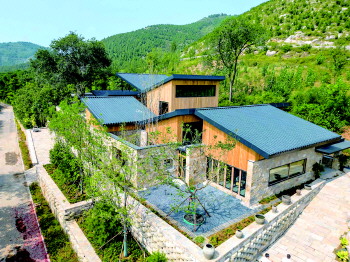 拾级而上,一座座古朴美丽的传统院落与夫子洞村的传统村貌融为一体,相得益彰。“我们保留村民的山居外貌加以改造,并配套了供水供电、道路交通、生活起居、文化娱乐等各项设施。”夫子山居店长孔德强说,“这里是‘见贤’接待大厅,取自《论语》‘见贤思齐焉,见不贤而内自省也’,教导我们要向贤明的人学习,时常反思自身的错误。大厅核心区域设置的文化空间,由千根方形构件组合而成,代表了儒家文化的博大精深、包罗万象。顶部巧妙的设计使得阳光汇聚,光影斑驳,寓意孔子思想集古圣贤之大成,后世发扬光大,为人类文明作出了突出贡献。”