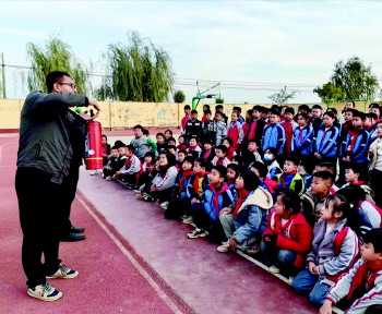 在活动中,学校通过国旗下讲话对全体师生进行了消防安全教育。同时,各班班主任召开了消防安全主题班会,班会上,老师通过视频、真实案例为孩子们讲解了消防安全知识。随着一声紧急的警报声响起,疏散逃生演练开始,全体学生在教师的组织下,捂着口鼻,弯着腰、紧贴墙根,安全、快速、有序地从班级撤离到操场,整个过程用时仅1分34秒。接着,刘义忠老师为全体师生讲解了灭火器的使用步骤和方法,全体师生认真观摩了如何正确使用灭火器灭火,并邀请老师和学生代表亲自体验了灭火的过程。