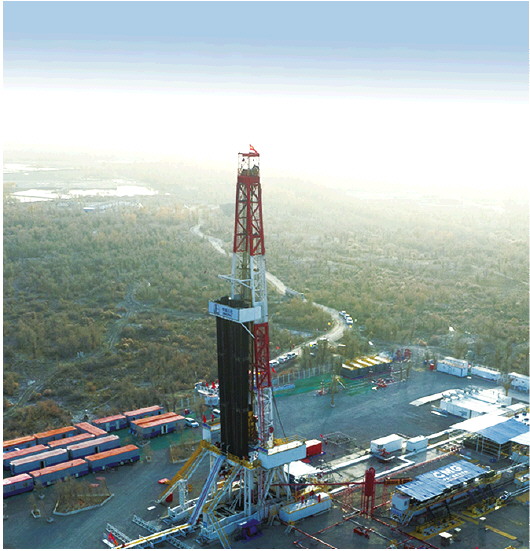 中国石化15日宣布,公司部署在塔里木盆地的中国石化“深地一号”跃进3-3XC井测试获得高产油气流,日产原油200吨,天然气5万立方米。该井完钻井深达9432米,刷新亚洲最深井斜深和超深层钻井水平位移两项纪录。图为11月15日拍摄的“深地一号”跃进3-3XC井(无人机照片)。 新华社发