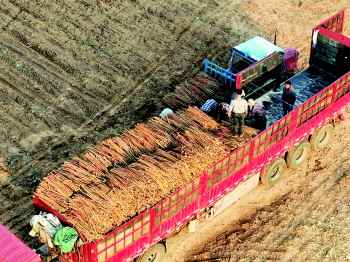本报德州11月15日讯(记者 李庆都 通讯员 宋慧婷) 眼下,正值牛蒡丰收的时节,在夏津县渡口驿乡管新庄村牛蒡种植农田内,一台台牛蒡收获机驶过,村民将牛蒡从地里拔出来,扎捆、装车,紧张忙碌,一气呵成,到处是一派喜庆丰收的热闹景象。