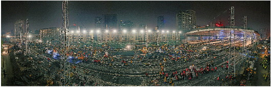 据了解,为保证此次施工顺利完成,中铁十局制定了切实可行的专项方案和详尽的应急预案,多次对施工方案进行推演。针对施工空间狭窄、作业距离长的特点,将现场划分为京沪三四线拨移、东咽喉改造和中咽喉改造等多个作业面同时施工,投入1700余名现场作业人员、近百余台大中型机械设备。