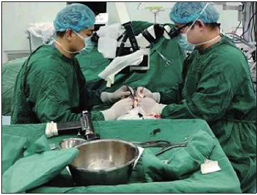 断指再植手术中。