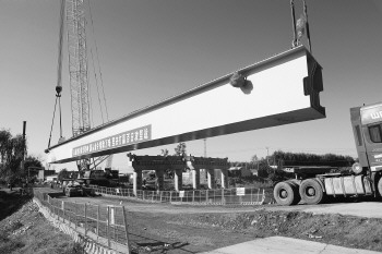 羊山运河大桥首跨钢结构箱梁架设成功。